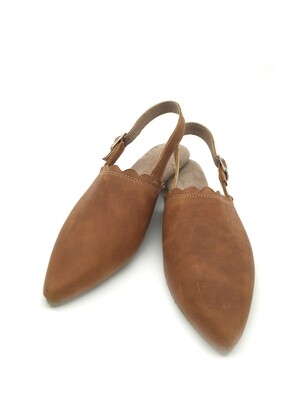 Our leather Roniya T-bars Stitchdowns, with veldskoen-style stitchdown construction, features a pointed and perforated vamp (as texture) which is fitted upon a T-bar ankle strap section. The design allows you to bring your favourite star-crossed colour combo together. May the sound of the wearers' footsteps accompany joyous songs.